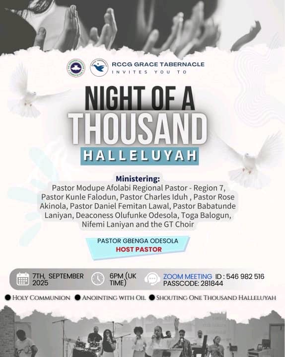 It will be a glorious night of holy communion, anointing with oil and shouting of a thousand halleluyah
